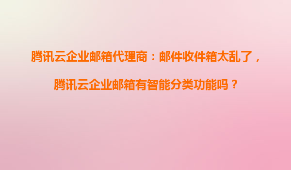 2025-10-29腾讯云企业邮箱代理商推荐:智能分类功能解决邮件收件箱杂乱问题 引言:企业邮箱的痛点与需求 在现代企业中,电子邮件是沟通的核心工具之一。然而,随着业务量...
