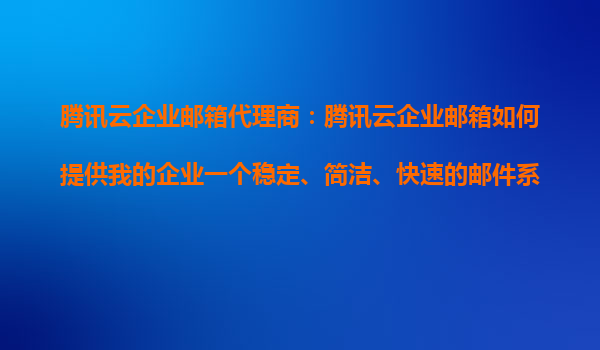 2025-10-26腾讯云企业邮箱代理商:腾讯云企业邮箱如何提供我的企业一个稳定、简洁、快速的邮件系统? 一、腾讯云企业邮箱的核心优势 作为腾讯云企业邮箱代理商,我们深知企业邮箱对于现代企业的重要性。腾讯云企...