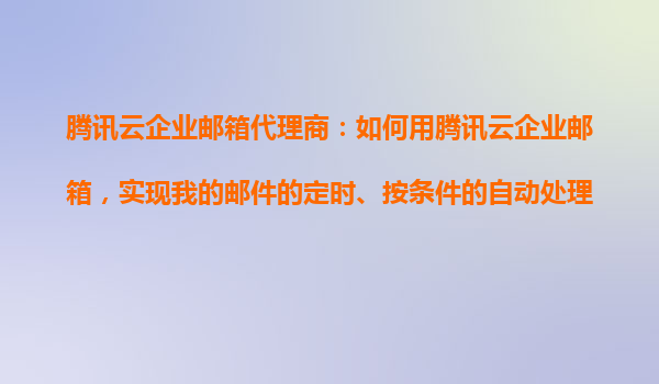 2025-10-26腾讯云企业邮箱代理商的自动化邮件管理方案 通过腾讯云企业邮箱的智能功能,企业可以实现邮件的定时投递、分类归档以及自动回复等高阶操作,大幅提升工作效率。本文将详细介绍如何利用腾讯云企业邮...