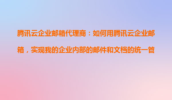 2025-10-27腾讯云企业邮箱代理商:如何用腾讯云企业邮箱实现企业内部邮件和文档的统一管理 在数字化办公时代,企业需要高效的管理工具来整合邮件通信与文档协作功能。腾讯云企业邮箱作为一款专业的企业级邮箱服务,不仅可...