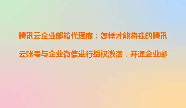 2025-10-26腾讯云企业邮箱与企业微信授权激活全攻略 在数字化办公时代,腾讯云企业邮箱以其高效稳定的服务成为企业通信的首选。本文将详细介绍如何通过代理商完成腾讯云账号与企业微信的授权绑定,快速开通企业邮功能,并...