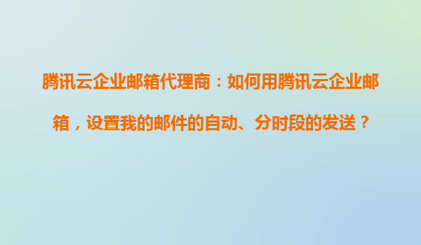 腾讯云企业邮箱代理商指南:如何利用分时段自动发送功能提升邮件效率 一、腾讯云企业邮箱自动发送功能的优势 作为领先的企业邮箱服务商,腾讯云企业邮箱凭借以下核心优势,为企业客户提供高效稳定的邮件自动化服务...