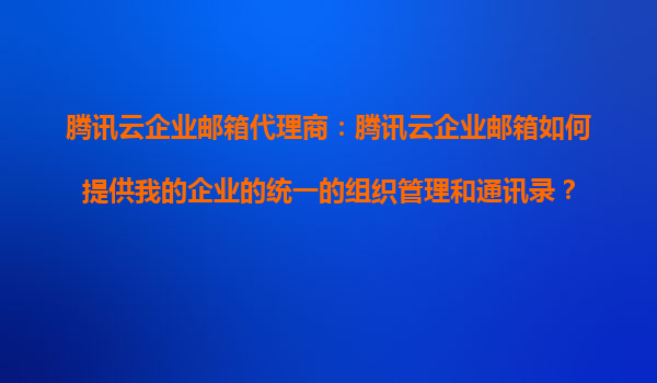2025-10-26腾讯云企业邮箱代理商:腾讯云企业邮箱如何提供企业统一的组织管理与通讯录? 一、引言:数字化转型中的企业通讯需求 在数字化转型浪潮中,高效的企业通讯与组织管理成为刚需。腾讯云企业邮箱作为国内领先...