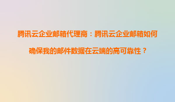 2025-10-26腾讯云企业邮箱如何确保邮件数据在云端的高可靠性 在数字化时代,企业邮箱的安全性和可靠性直接影响业务运营效率。腾讯云企业邮箱凭借强大的技术实力和丰富的云服务经验,为用户提供高可靠性的邮件存储与传输服务。...
