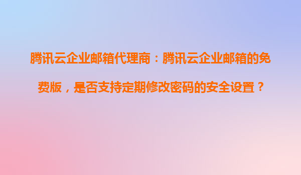 2025-10-25腾讯云企业邮箱代理商指南:如何设置邮箱账号的登录密码复杂度和时效性 一、腾讯云企业邮箱的安全管理优势 腾讯云企业邮箱作为国内领先的企业级邮箱服务,提供了完善的安全管理功能,尤...