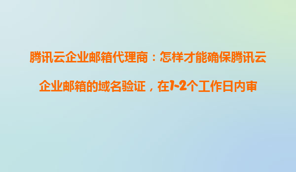 腾讯云企业邮箱代理商:如何确保域名验证在1-2个工作日内快速审核通过? 一、域名验证的重要性 腾讯云企业邮箱的域名验证是开通企业邮箱服务的必要步骤。通过验证,可以证明您对该域名的所有权,确...