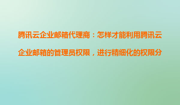 2025-10-24腾讯云企业邮箱代理商:精细化权限分配的管理之道 一、腾讯云企业邮箱的核心优势 腾讯云企业邮箱作为国内领先的企业级邮箱解决方案,凭借其高可用性架构和丰富的管理功能,已成为企业数字化转型的重要...