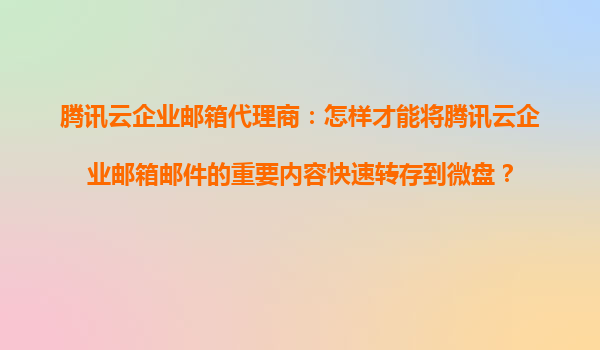 2025-10-24腾讯云企业邮箱代理商指南:如何高效转存邮件重要内容至微盘 一、腾讯云企业邮箱的核心优势 作为腾讯云企业邮箱代理商,首先需了解其核心功能与技术优势,才能更好地为客户提供解决方案。 ...