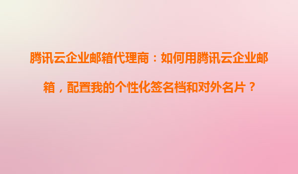 2025-10-24腾讯云企业邮箱:打造专属个性化签名档与对外名片 腾讯云企业邮箱作为高效的商务沟通工具,不仅提供稳定的邮件服务,还支持个性化设置,帮助企业塑造专业形象。本文将详细介绍如何配置签名档与名片,并结合腾讯...