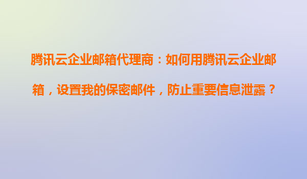 2025-10-23腾讯云企业邮箱代理商:保密邮件设置指南 为什么选择腾讯云企业邮箱? 腾讯云企业邮箱作为国内领先的企业级邮件服务,依托腾讯强大的技术实力和安全性保障,为企业用户提供高效、稳定的邮件通讯解决方案。...