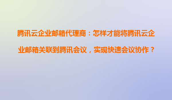 2025-10-23腾讯云企业邮箱代理商指南:如何关联腾讯云企业邮箱与腾讯会议实现高效协作 一、腾讯云企业邮箱与腾讯会议关联的背景与价值 随着企业数字化转型加速,高效的内部协作工具已成为企业运营...