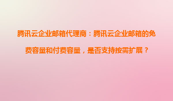 2025-10-23腾讯云企业邮箱代理商:腾讯云企业邮箱的免费容量和付费容量,是否支持按需扩展? 一、腾讯云企业邮箱简介 腾讯云企业邮箱是腾讯云为企业用户提供的专业邮件服务,不仅具备高效稳定的邮件收发功能,还...