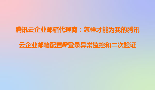 2025-10-23腾讯云企业邮箱代理商指南:配置IP登录异常监控与二次验证 在当今数字化时代,企业邮箱的安全性至关重要。腾讯云企业邮箱作为国内领先的企业邮箱服务提供商,为企业用户提供了强大的安全保障功能。本文将详细介绍...