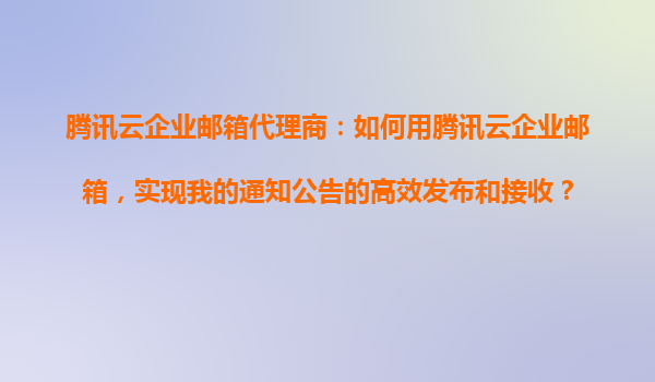 2025-10-23腾讯云企业邮箱代理商:如何用腾讯云企业邮箱实现通知公告的高效发布和接收 引言 在现代企业管理中,高效的信息传递是实现团队协作和业务运转的关键。腾讯云企业邮箱作为一款专业的企业级邮件服务,不仅提...