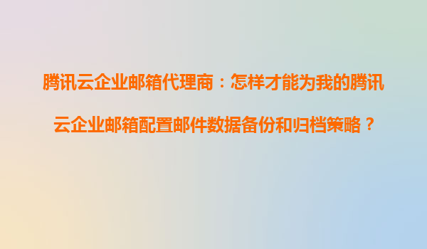 2025-10-23腾讯云企业邮箱的数据备份与归档策略配置指南 引言:企业邮箱数据管理的重要性 在数字化转型的今天,企业邮件不仅是沟通工具,更是业务往来的重要凭证。腾讯云企业邮箱凭借其高可靠性、安全性及灵活的扩展...