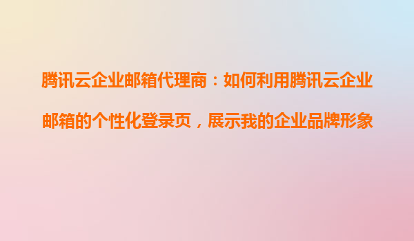 2025-10-23腾讯云企业邮箱代理商:如何利用腾讯云企业邮箱的个性化登录页,展示我的企业品牌形象? 一、腾讯云企业邮箱的核心价值 腾讯云企业邮箱作为国内领先的企业级邮件服务解决方案,凭借腾讯强大的技术...