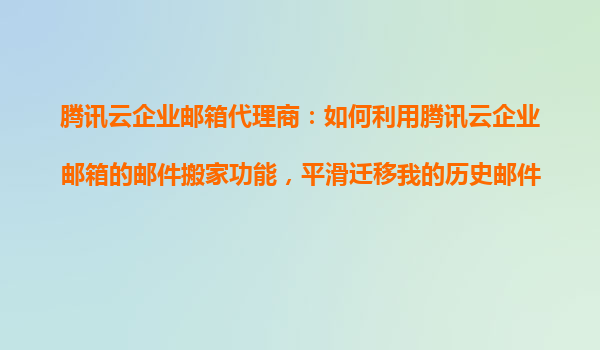 2025-10-22腾讯云企业邮箱代理商:如何利用邮件搬家功能平滑迁移历史邮件? 一、为什么要选择腾讯云企业邮箱? 腾讯云企业邮箱作为国内领先的企业级邮件服务解决方案,凭借其高安全性、稳定性和智能化功能,...