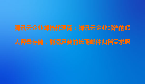 2025-10-22腾讯云企业邮箱代理商:腾讯云企业邮箱的超大容量存储,能满足我的长期邮件归档需求吗? 一、企业邮件归档的重要性 在数字化办公时代,电子邮件是企业沟通和业...