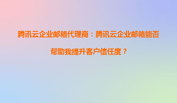 2025-10-21腾讯云企业邮箱如何提升客户信任度 在当今数字化商业环境中,企业邮箱不仅是沟通工具,更是企业专业形象和信誉的重要载体。作为腾讯云企业邮箱的代理商,我们深知一个稳定、安全、高效的企业邮箱系统对提升客户信任...
