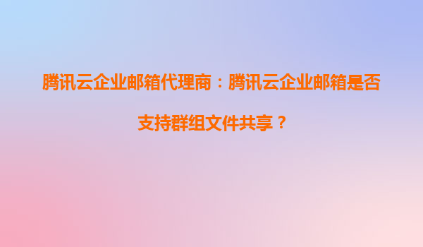 2025-10-21腾讯云企业邮箱代理商解析:腾讯云企业邮箱是否支持群组文件共享? 一、腾讯云企业邮箱的群组文件共享功能 腾讯云企业邮箱作为国内领先的企业级邮箱服务,不仅提供基础的邮件收发功能,还支持高效的团...