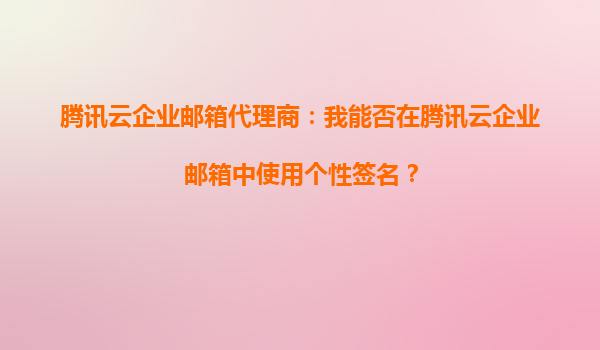 2025-10-17腾讯云企业邮箱代理商:如何高效使用个性签名功能? 一、腾讯云企业邮箱的个性签名功能 腾讯云企业邮箱作为国内领先的企业邮箱服务之一,提供了强大的个性签名功能,允许用户在发送邮件时自动附加自定义的...