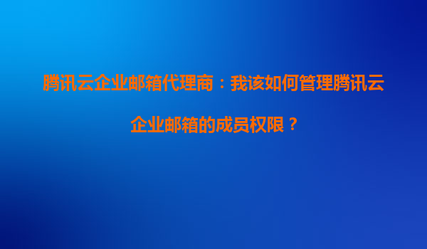 2025-10-17腾讯云企业邮箱代理商:如何高效管理成员权限? 一、腾讯云企业邮箱的优势 腾讯云企业邮箱作为国内领先的企业级邮箱服务,具备以下核心优势: 高安全性:采用金融级加密技术,支持SP...