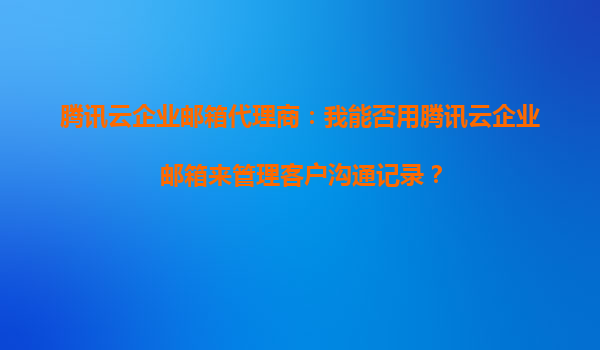 2025-10-17腾讯云企业邮箱代理商:我能否用腾讯云企业邮箱来管理客户沟通记录? 引言 在当今数字化时代,企业的客户沟通管理变得尤为重要。无论是初创企业还是大型公司,...