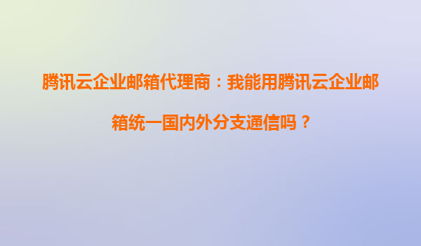 2025-10-15腾讯云企业邮箱代理商:我能用腾讯云企业邮箱统一国内外分支通信吗? 腾讯云企业邮箱的全球化通信能力 腾讯云企业邮箱作为一款面向企业的专业邮箱服务,具备强大的全球化通信能力。通过腾讯云...