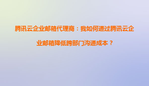 2025-10-15腾讯云企业邮箱代理商:如何通过腾讯云企业邮箱降低跨部门沟通成本? 引言:跨部门沟通的挑战 在现代企业中,跨部门协作是提升效率的关键,但沟通成本高、信息传递滞后、权限管理混乱等...