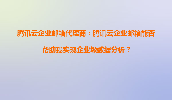 2025-10-15腾讯云企业邮箱代理商:腾讯云企业邮箱能否帮助我实现企业级数据分析? 腾讯云企业邮箱的核心功能与优势 作为腾讯云旗下的企业级邮箱服务,腾讯云企业邮箱不仅...