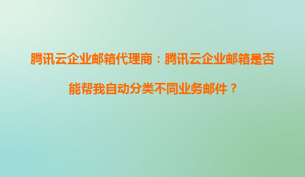 2025-10-10腾讯云企业邮箱代理商:腾讯云企业邮箱是否能帮我自动分类不同业务邮件? 在当今快节奏的商业环境中,企业每天都要处理大量的电子邮件。如何高效地管理这些邮件,尤其是将不同业务的邮件自动分类,成为了许多企...