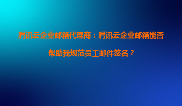 2025-10-10腾讯云企业邮箱代理商:腾讯云企业邮箱能否帮助我规范员工邮件签名? 一、腾讯云企业邮箱的规范签名功能 腾讯云企业邮箱作为一款专业的企业级邮箱服务,提供了强大的邮件签名管理功能,能够帮助企...