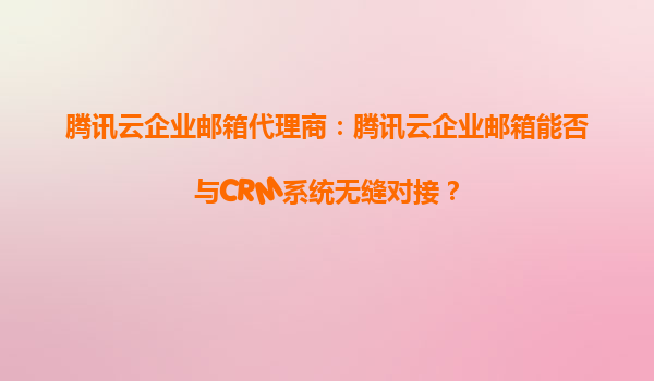 腾讯云企业邮箱代理商:腾讯云企业邮箱能否与CRM系统无缝对接? 一、腾讯云企业邮箱的核心优势 腾讯云企业邮箱作为国内领先的企业级邮箱服务,依托腾讯强大的技术生态,具备以下核心优势: ...