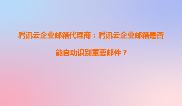 2025-10-10腾讯云企业邮箱代理商:腾讯云企业邮箱是否能自动识别重要邮件? 在当今快节奏的商业环境中,企业邮箱已成为日常沟通不可或缺的工具。然而,随着邮件数量的增加,如何高效管理邮件、快速识别重要信息成为许多企...