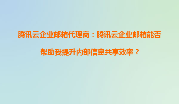2025-10-10腾讯云企业邮箱代理商:腾讯云企业邮箱能否帮助我提升内部信息共享效率? 在当今快节奏的商业环境中,企业内部信息共享的效率直接影响着团队协作的流畅度和整体生产力。腾讯云企业邮箱作为一款专业的企业级邮箱...