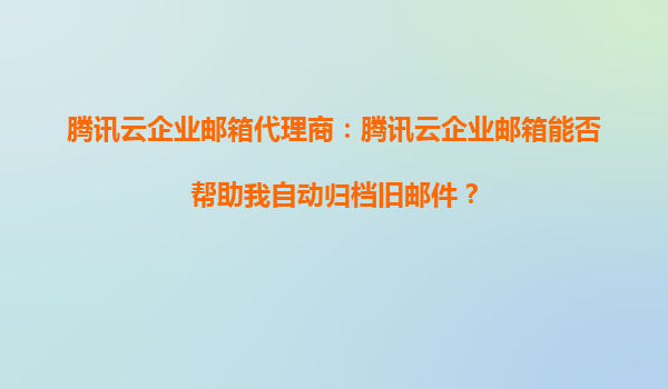2025-10-09腾讯云企业邮箱代理商:腾讯云企业邮箱能否帮助我自动归档旧邮件? 企业邮件管理的痛点与需求 在现代企业中,邮件作为重要的沟通工具,每天都会产生大量的往来信息。随着时间的推移...
