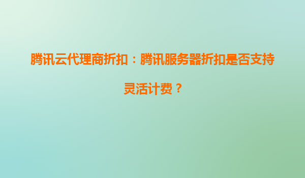腾讯云代理商折扣:灵活计费与成本优化的双重优势