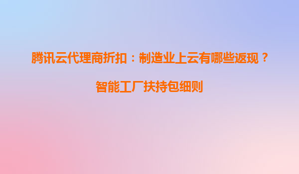腾讯云制造业上云解决方案及代理商返现政策解析