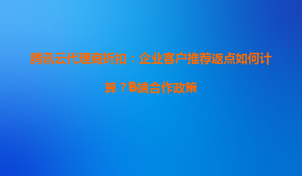 腾讯云代理商合作政策解析:企业客户推荐返点与B端合作优势