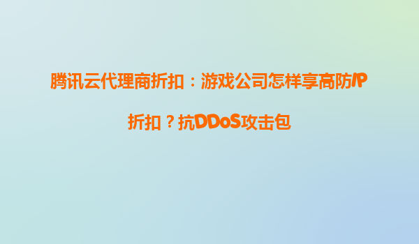 腾讯云代理商折扣解析:游戏公司如何享受高防IP与抗DDoS攻击包优惠