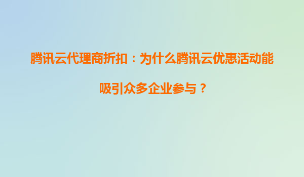 腾讯云代理商折扣:为什么腾讯云优惠活动能吸引众多企业参与?