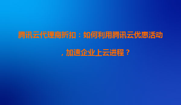 腾讯云代理商折扣:如何利用优惠活动加速企业上云进程?