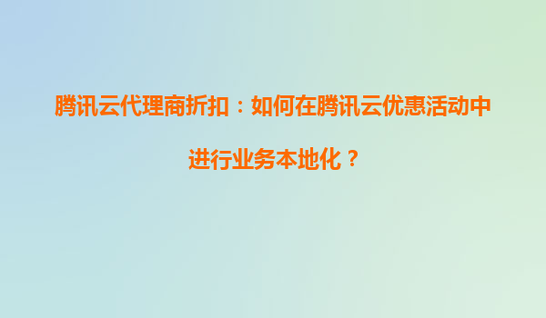腾讯云代理商折扣:如何在腾讯云优惠活动中进行业务本地化?