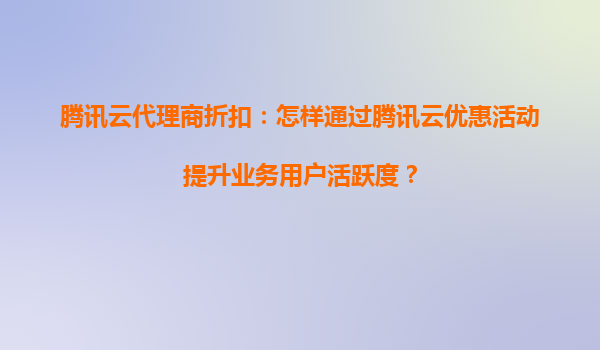腾讯云代理商折扣:如何通过优惠活动提升业务用户活跃度?