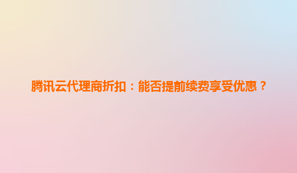 腾讯云代理商折扣:提前续费能否享受优惠?深度解析与优势盘点