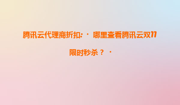 腾讯云双11限时秒杀:代理商折扣助您轻松上云