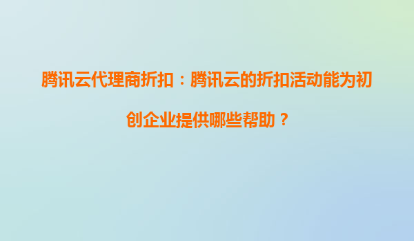腾讯云代理商折扣:腾讯云的折扣活动能为初创企业提供哪些帮助?