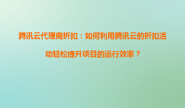 腾讯云代理商折扣:如何利用腾讯云的折扣活动轻松提升项目的运行效率?