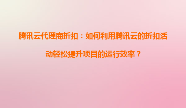 腾讯云代理商折扣:如何利用腾讯云的折扣活动轻松提升项目的运行效率?