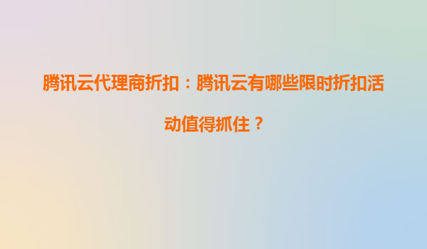 腾讯云代理商折扣:腾讯云有哪些限时折扣活动值得抓住?